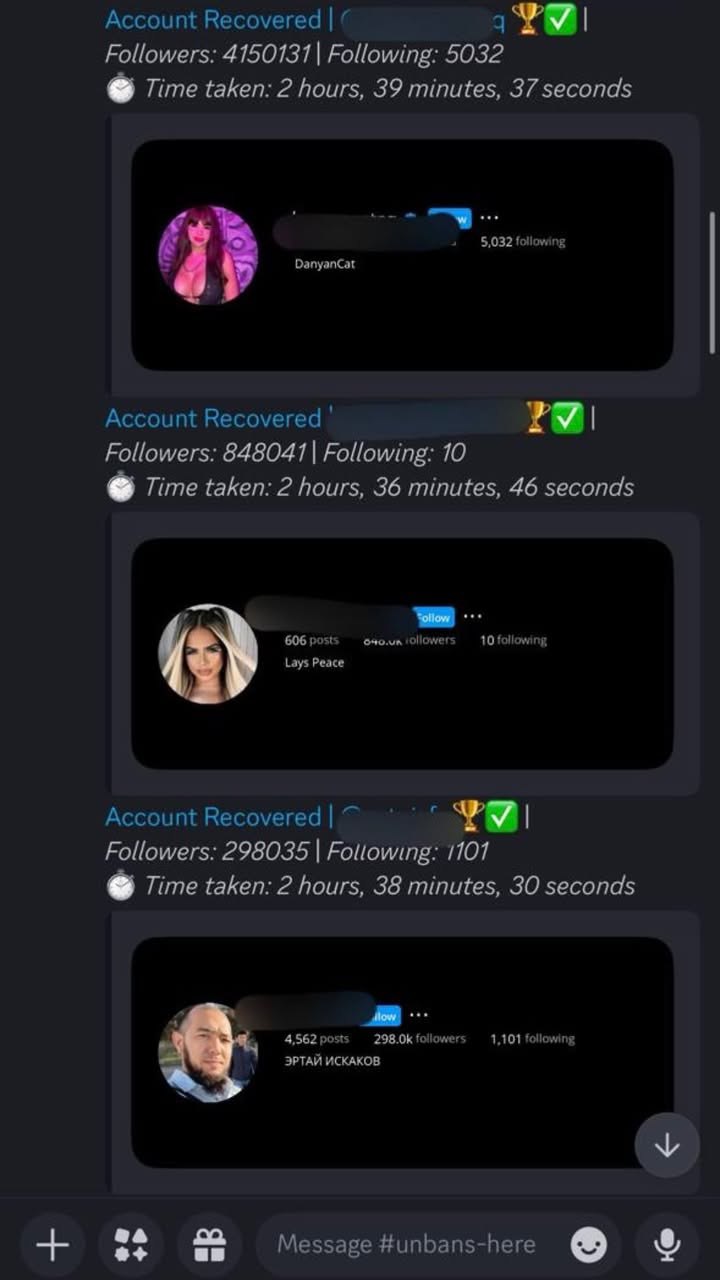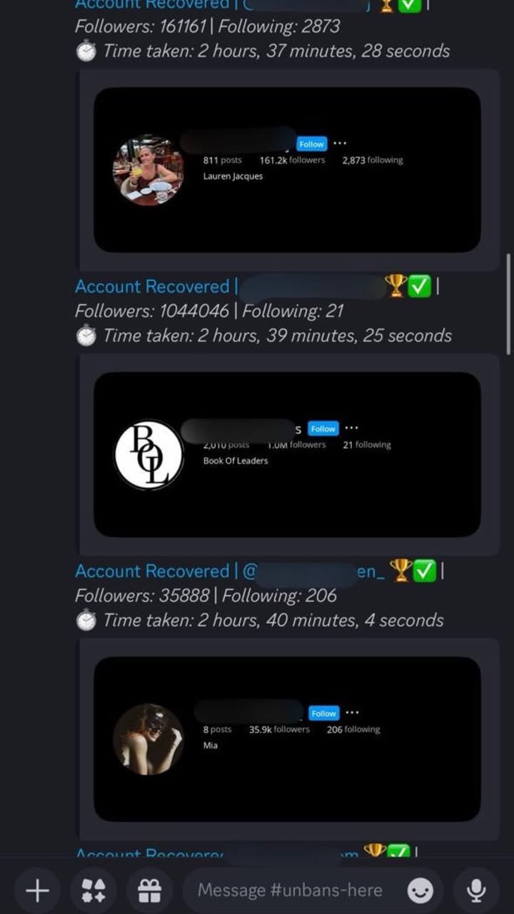 We provide account unban support, violation removal, copyright issue resolution, and hacked account recovery across social media platforms.